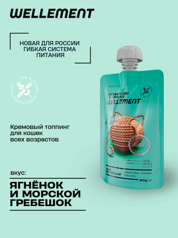 Wellement Ягненок и морской гребешок кремовый топпинг для кошек, 80 г |
