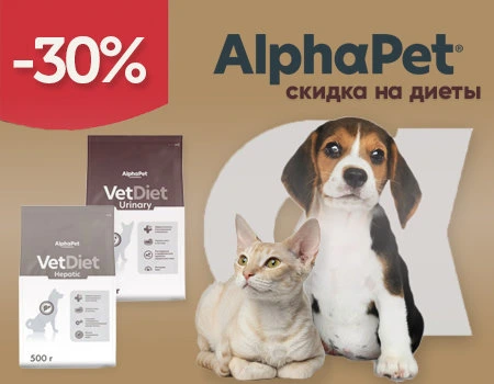 AlphaPet VetDiet: скидка 30% на ветеринарные корма