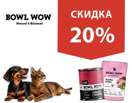 Покупайте влажный корм Bow Wow для кошек и собак с дополнительной скидкой 20%!