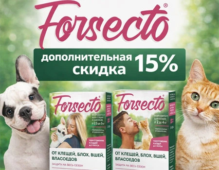 Сейчас вы можете закупить препарат против клещей, блох и паразитов Форсекто с максимальной выгодой!