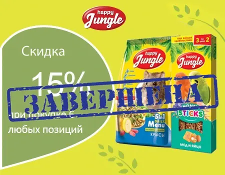 В ноябре вы можете приобрести корма Happy Jungle со скидкой 15%!