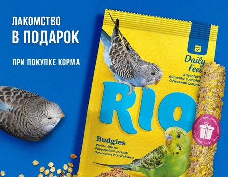 Спешите приобрести корм для птиц из лимитированной коллекции РИО с подарком! К каждой упаковке весом 1 кг в подарок прилагается вкусная палочка-лакомство!